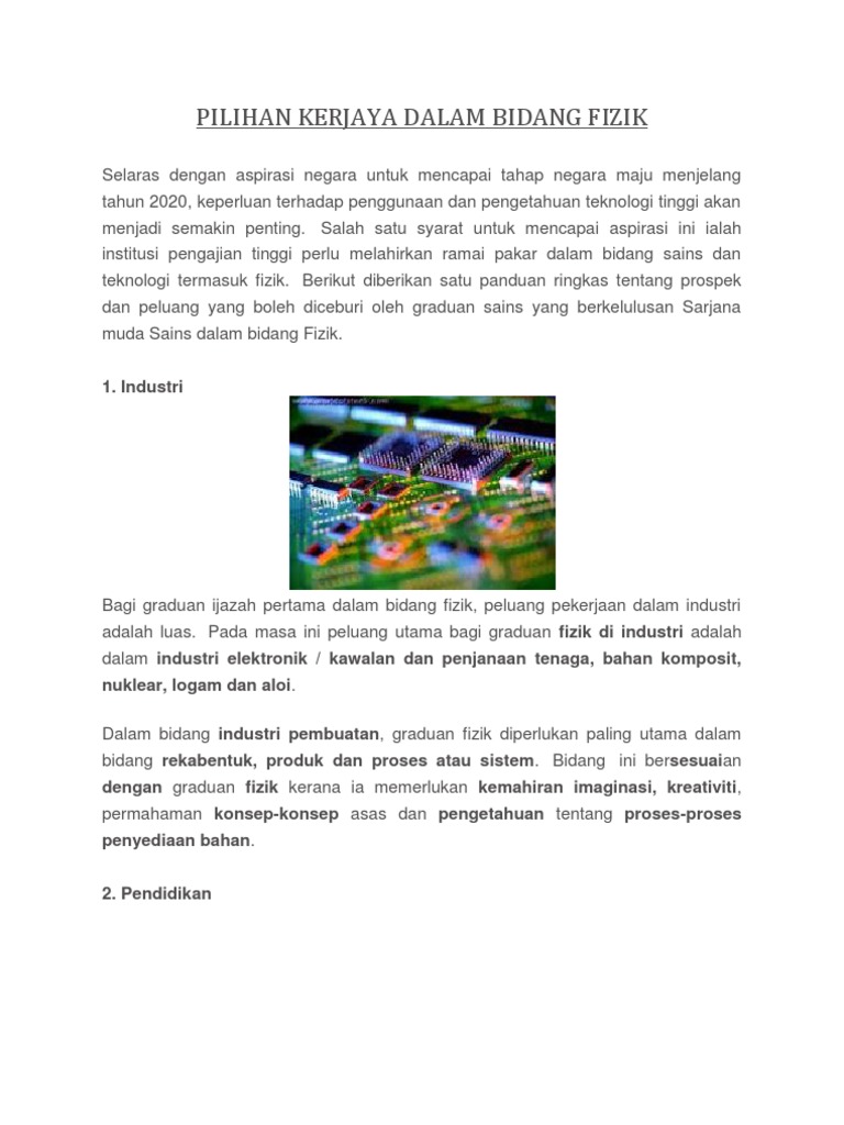 Pilihan Kerjaya Dalam Bidang Fizik Pdf